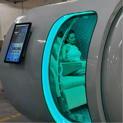 The Atlantis chamber’s spacious design allows two people to undergo therapy simultaneously, making it perfect for couples or shared treatments.